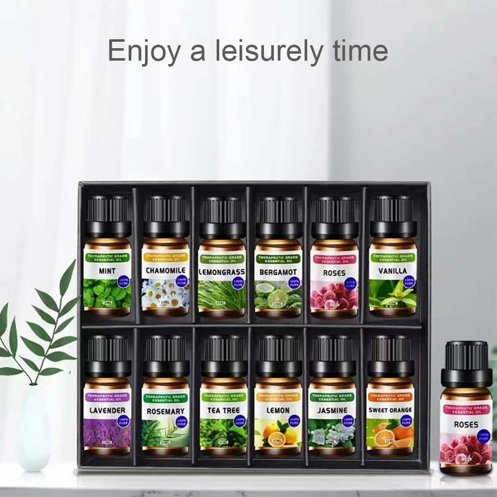 Elevate your aromatherapy with this luxury 12-bottle essential oil collection. Includes favorites like lavender, lemon, peppermint, rose, and jasmine—perfect for humidifiers and diffusers to create a calming, fragrant atmosphere anywhere.